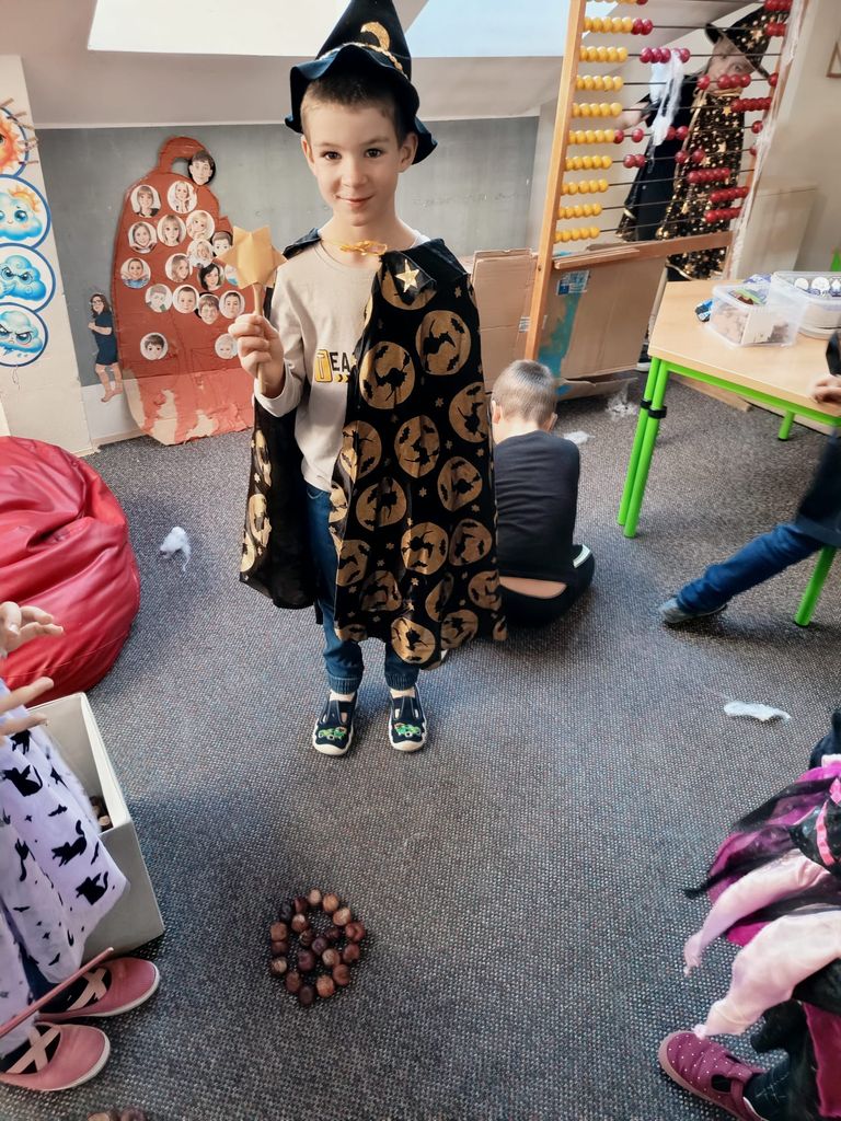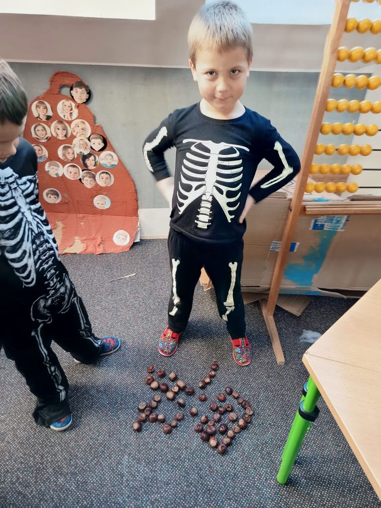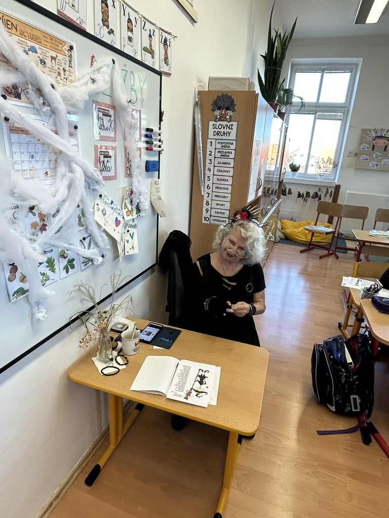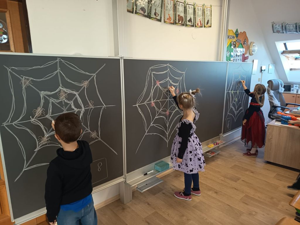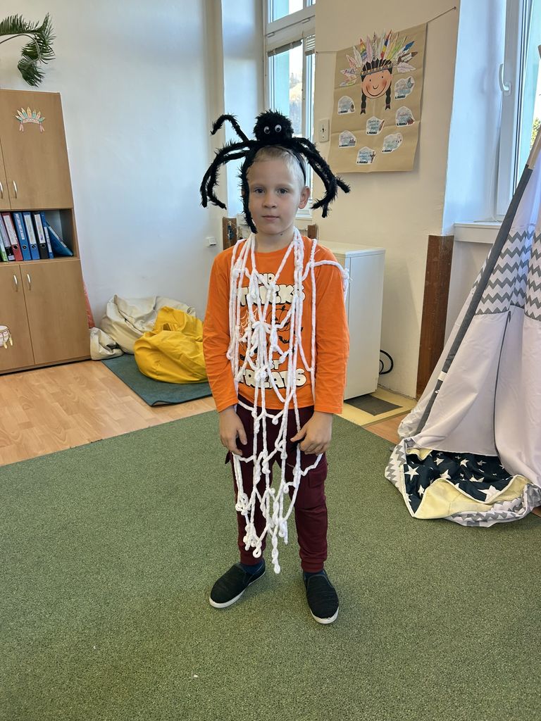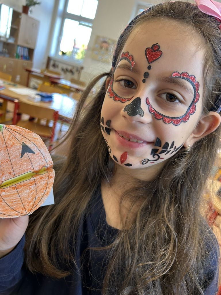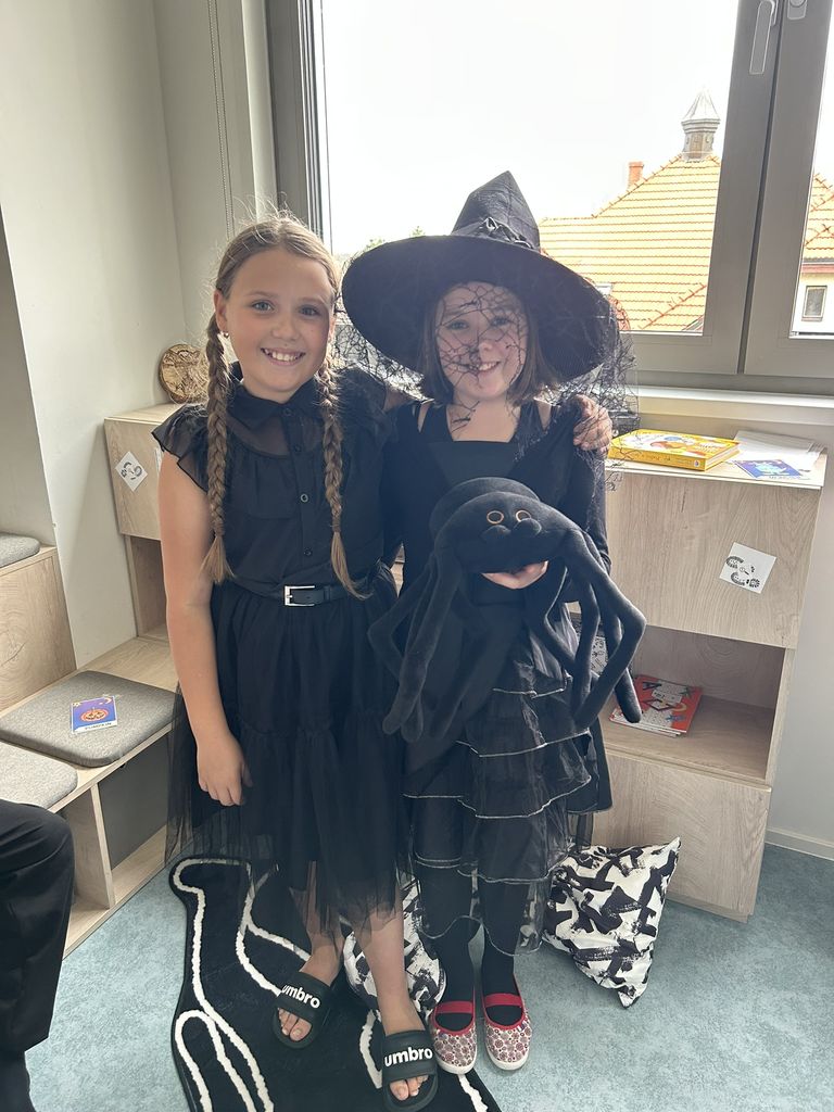 Každá třída měla svůj vlastní program – děti plnily tematické pracovní listy, povídaly si o tradicích, procvičovaly učivo v halloweenském duchu a nechyběl ani strašidelný taneček či „halloweenský tělocvik“, který si všichni naplno užili. Téma Halloweenu jsme však otevřeli také v hodinách angličtiny. Žáci se seznámili s novou slovní zásobou, tradicemi i způsobem, jak se Halloween slaví v anglicky mluvících zemích.