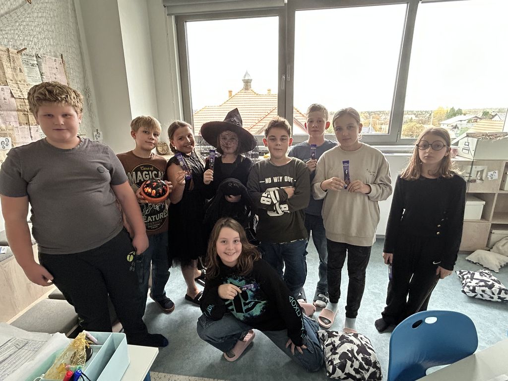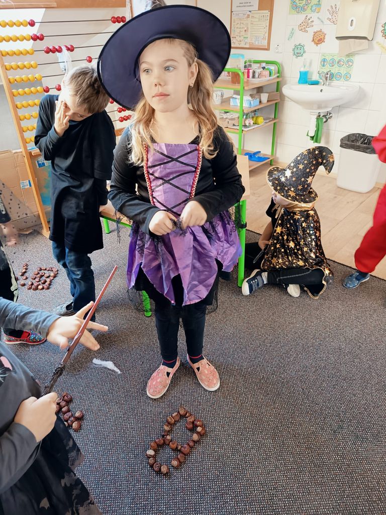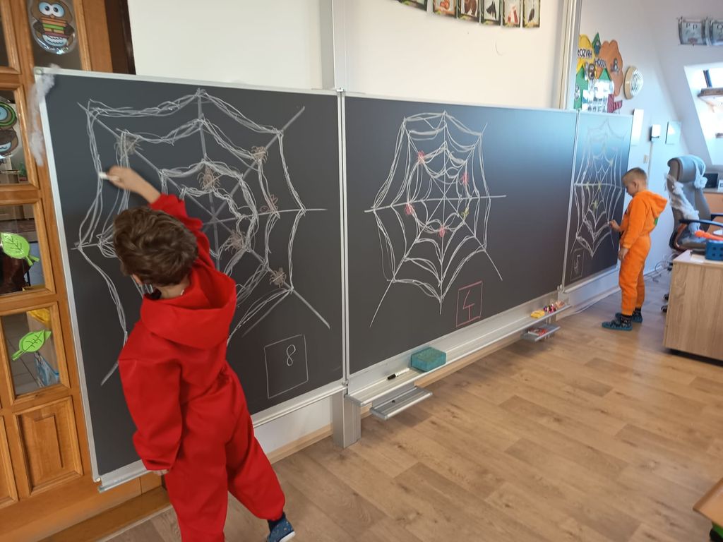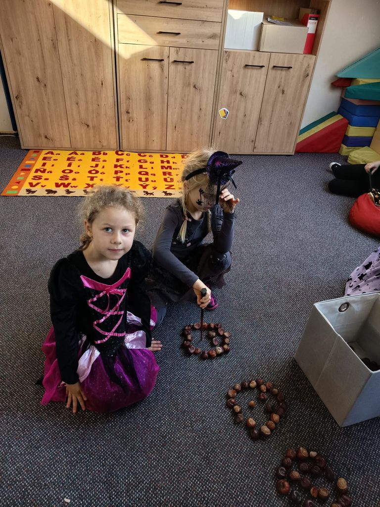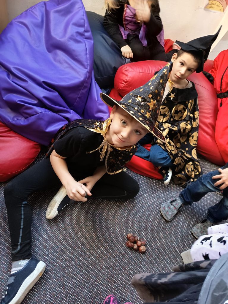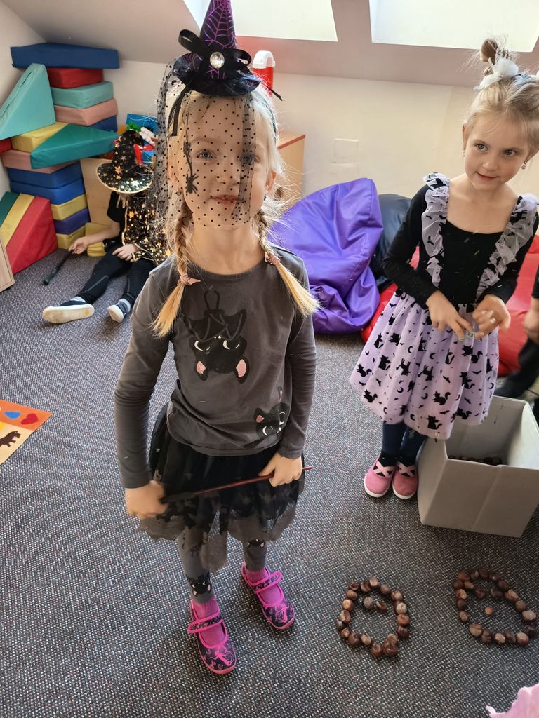 Každá třída měla svůj vlastní program – děti plnily tematické pracovní listy, povídaly si o tradicích, procvičovaly učivo v halloweenském duchu a nechyběl ani strašidelný taneček či „halloweenský tělocvik“, který si všichni naplno užili. Téma Halloweenu jsme však otevřeli také v hodinách angličtiny. Žáci se seznámili s novou slovní zásobou, tradicemi i způsobem, jak se Halloween slaví v anglicky mluvících zemích.