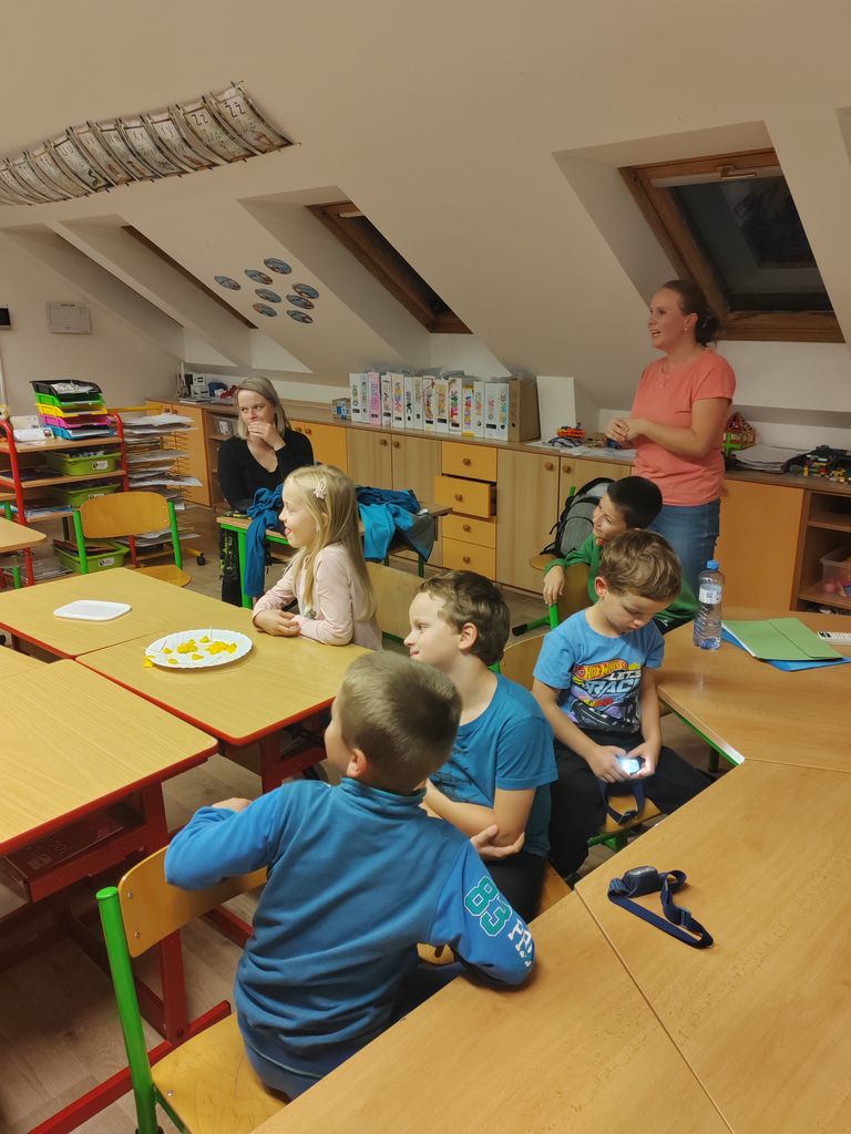 29.9. jsme se v 18:30 sešli v budově školy, abychom se zúčastnili přednášky a vycházky za netopýry. Vše pro nás zorganizovala paní Glombová. Její přednáška nás zaujala a všichni jsme se dobře bavili. Hned u vchodu do školy jsme viděli prvního netopýra. Bohužel i posledního. Senzor sice zaznamenal další tři, ale byli dobře schovaní. I tak jsme si večer pěkně užili. Děkujeme!