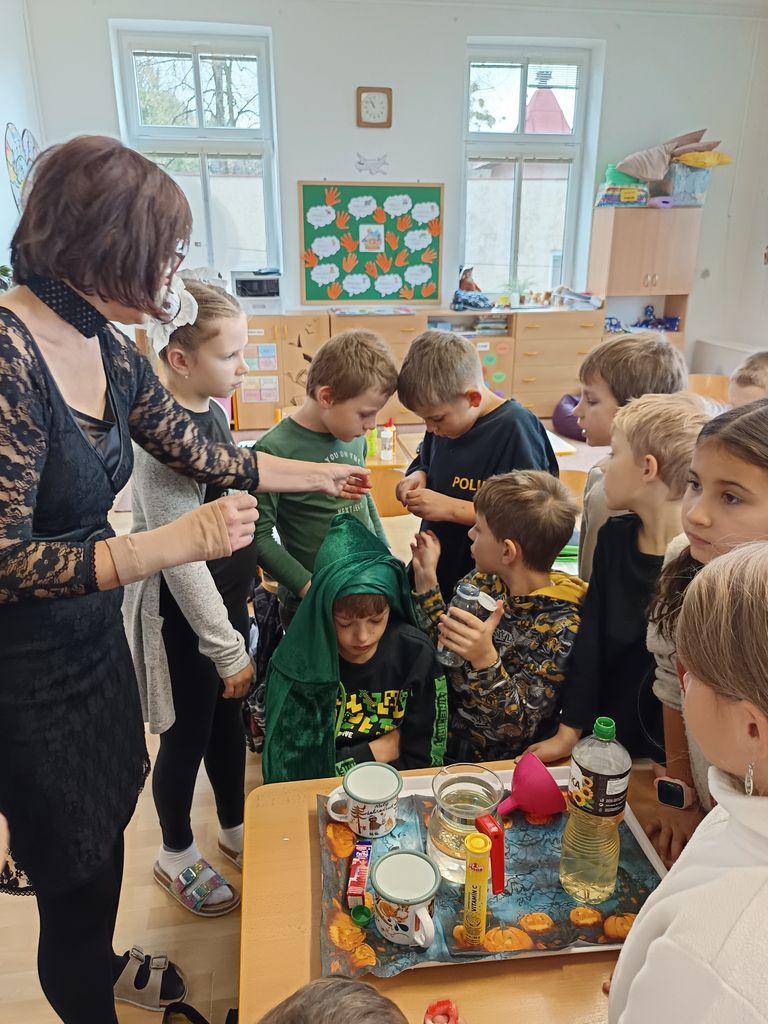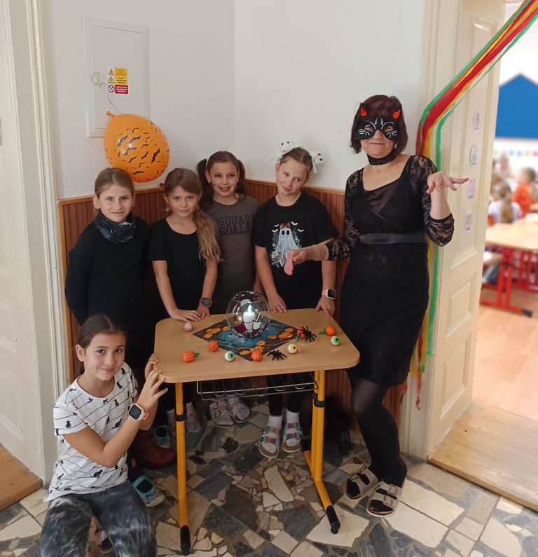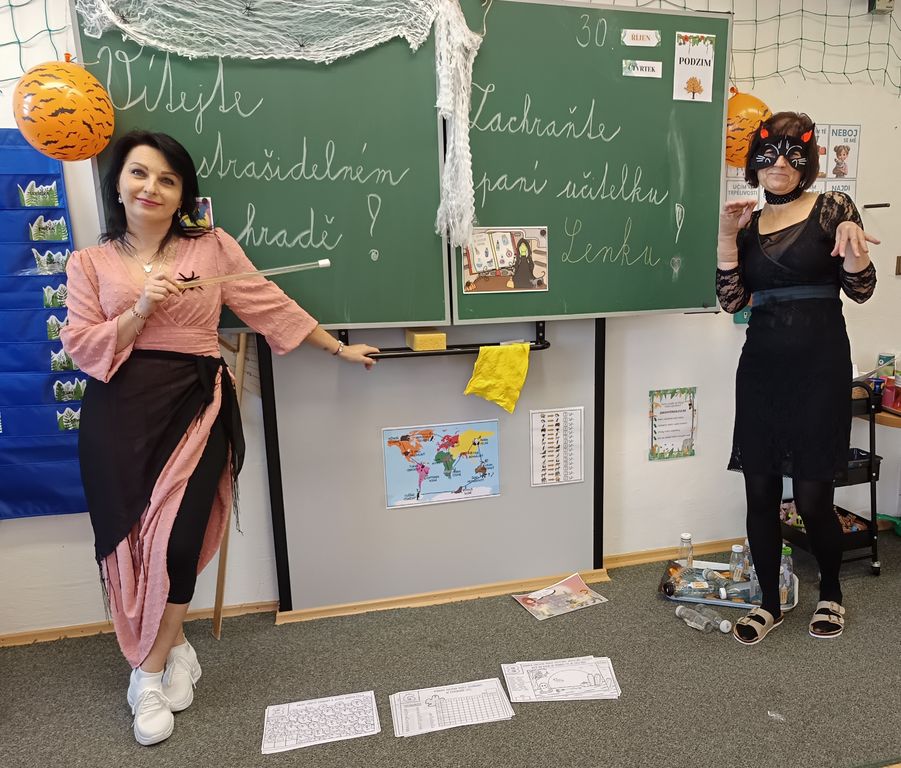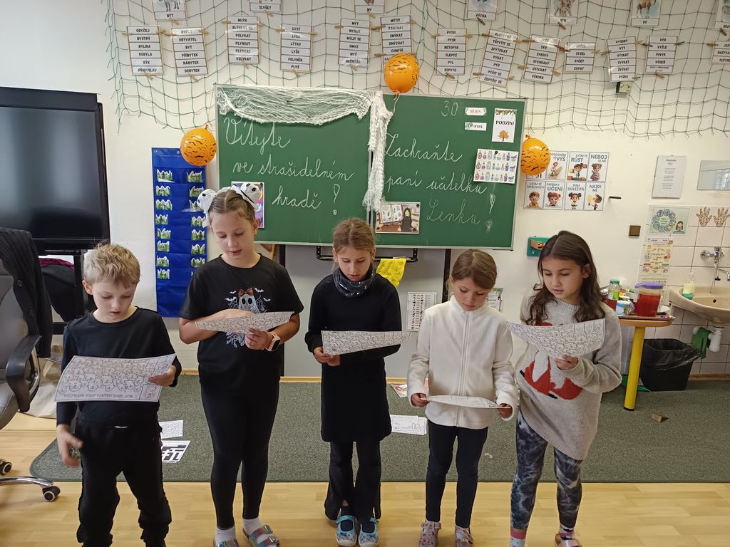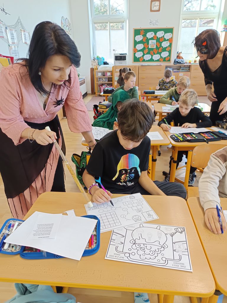 Ve čtvrtek, 30. října, si třeťáci užili nevšední dopoledne plné záhad, úkolů a kouzel. Čekala na ně úniková hra s názvem „Zachraňte paní učitelku Lenku!“ Zlá čarodějnice Elvíra totiž proměnila naši paní učitelku v kočku a děti měly jedinou šanci, jak ji zachránit – splnit osm úkolů z českého jazyka a matematiky na téma Halloween.