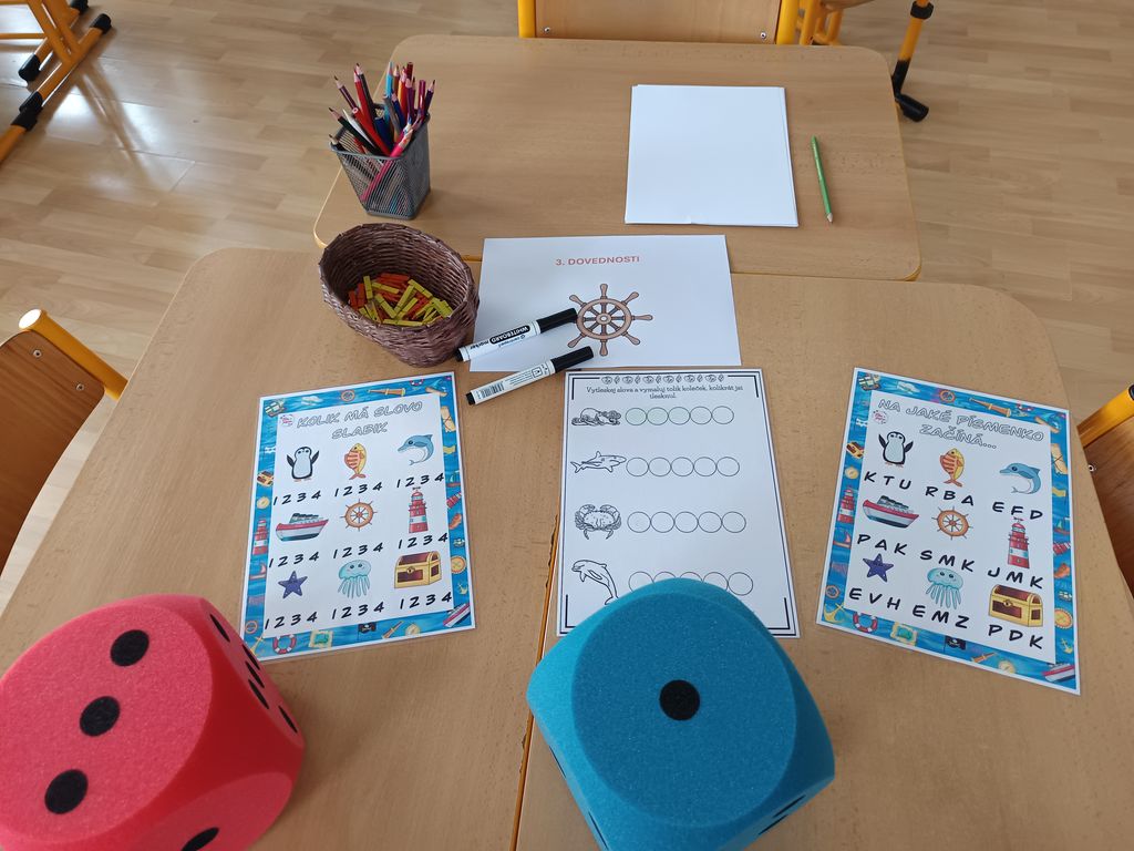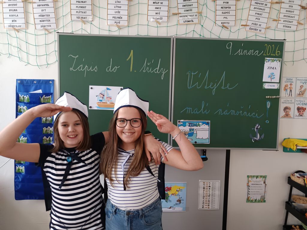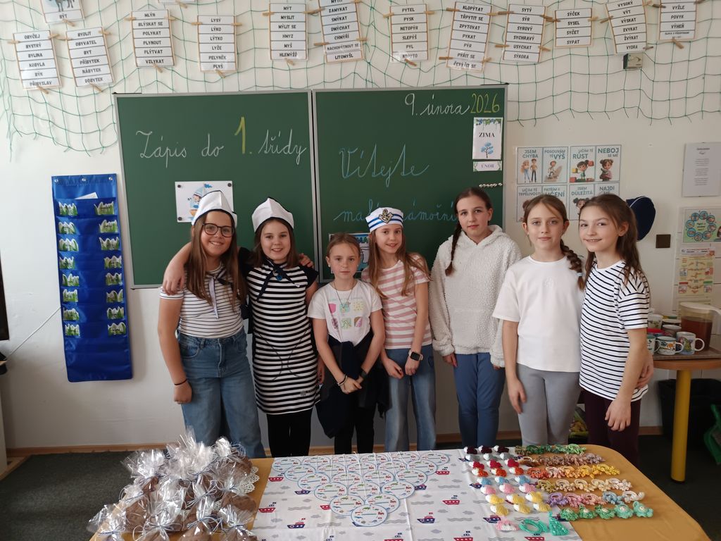 Hned u vchodu je přivítala usměvavá děvčata ze 4. a 5. ročníku v námořnických převlecích. Pro budoucí školáky bylo připraveno odpoledne s námořnickou tematikou. Děti ukázaly, že se úkolů jen tak nezaleknou, a s nadšením plnily připravené aktivity zaměřené na dovednosti předškoláků.